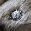 This antique silver coin can be used as a dealer button, card guard, display piece, or decision maker. The front side features the House of the Silver Wolves and the back features the Moon insignia.